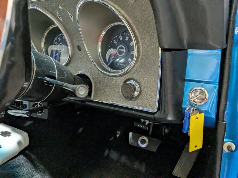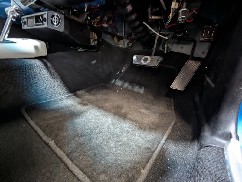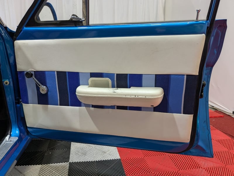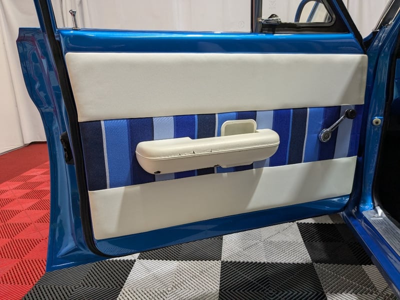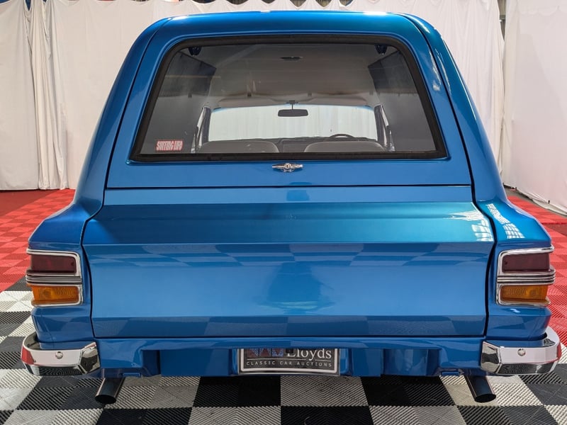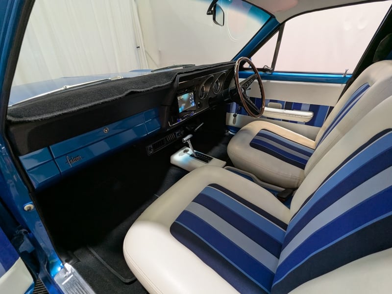 1971 Ford Falcon XY three‑door panel van finished in Blue. Powered by an 8‑cylinder petrol engine paired with a C4 automatic transmission. Odometer indicating 884 miles. Two‑seat configuration.