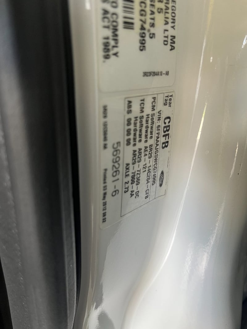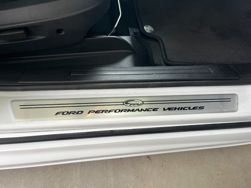 May 2012 build Ford Performance Vehicles GT‑F presented in White with Black/Orange interior. Supercharged V8 performance sedan paired with an automatic transmission. Odometer indicating just 7,914 kilometres.