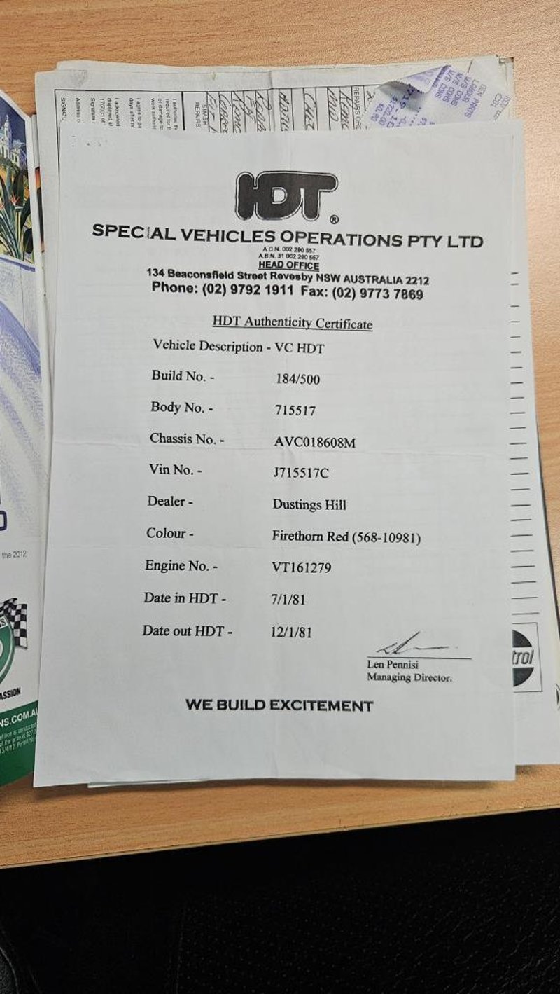 Powered by the 5.0‑litre V8 and retaining its period automatic transmission, the VC HDT Brock delivers classic rear‑wheel drive dynamics with unmistakable V8 character. Models of this era are increasingly sought after by collectors due to their motorsport heritage and limited production association with the HDT program, owned by the current custodian for 40 years, this model of car has been featured on the cover of the Australian Muscle car Magazine, with a featured story of the origin of the VC HDT, Owners manual included.