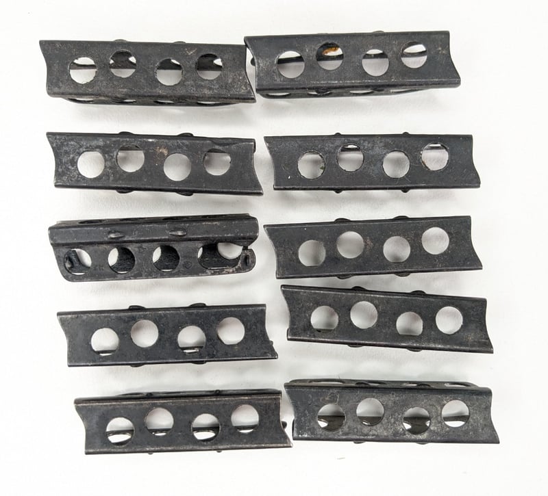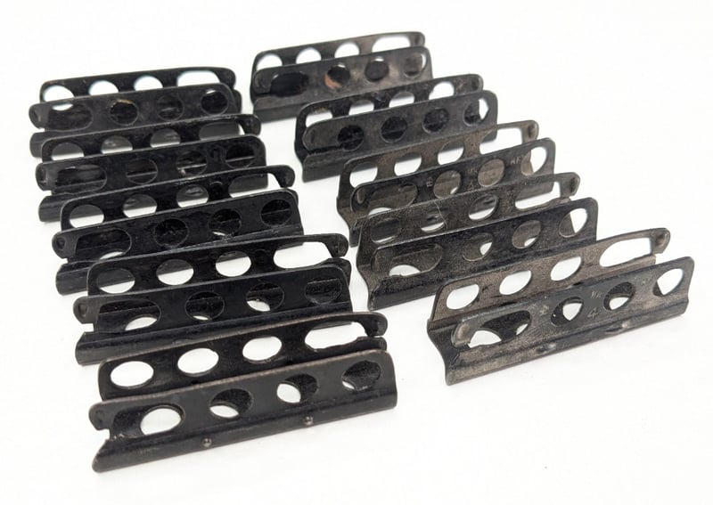ASSORTED BRITISH ARMY LEE ENFIELD SMILE RIFLE AMMUNITION STRIPER CLIPS, QTY 10