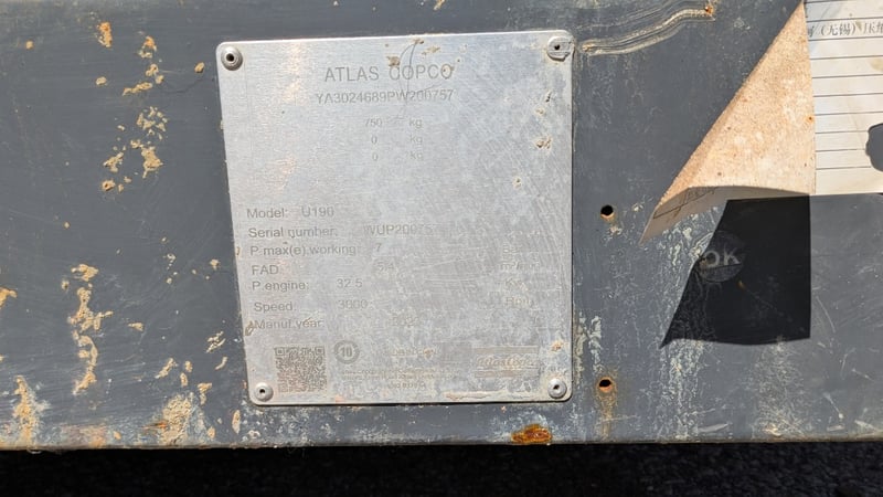 Atlas Copco U190 Skid Mounted Portable Air Compressor