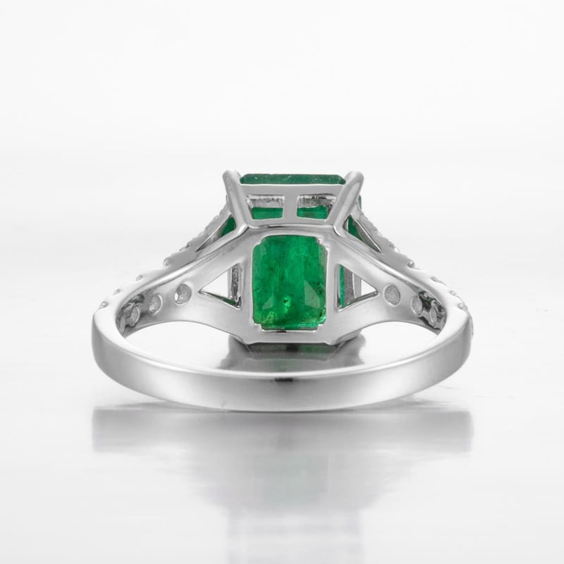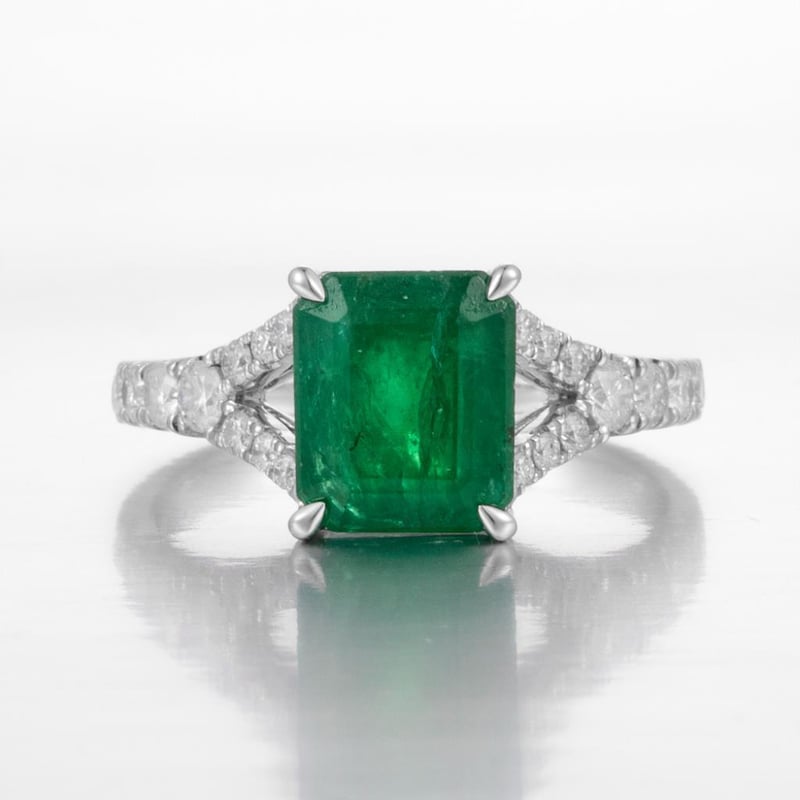 Featuring Centre, One Emerald Cut, Medium Vivid Green, Zambian Emerald (3.28Ct, Heavy Inclusions), Claw Set, With 20 Round Brilliant Cut Diamonds (0.48Ct Tdw, H-I Colour, Vs2-Si2 Clarity), Claw Set. Ring Size O.
