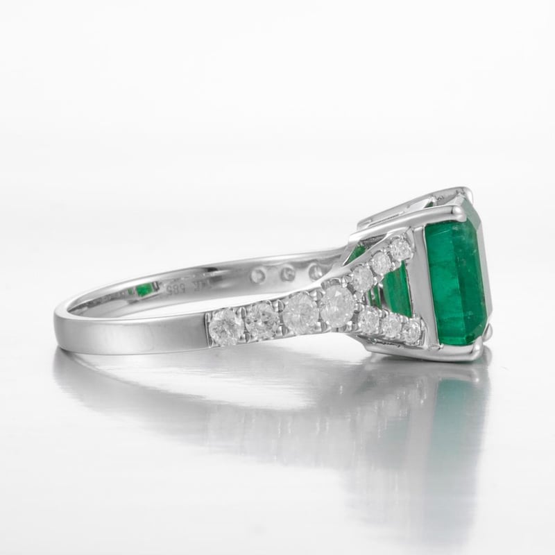 14CT WHITE GOLD ZAMBIAN EMERALD AND DIAMOND DRESS RING