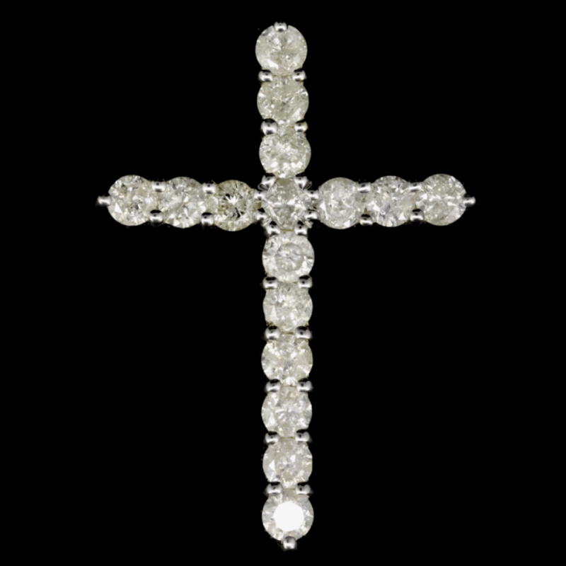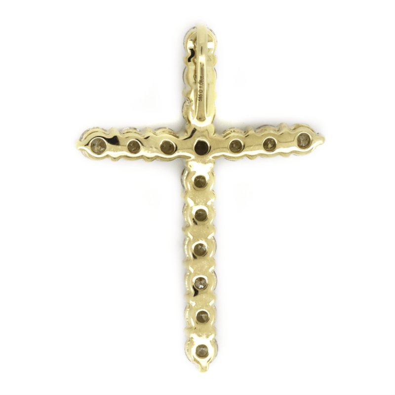 14K YELLOW GOLD, 1.08CT TDW DIAMOND, CRUCIFIX PENDANT.