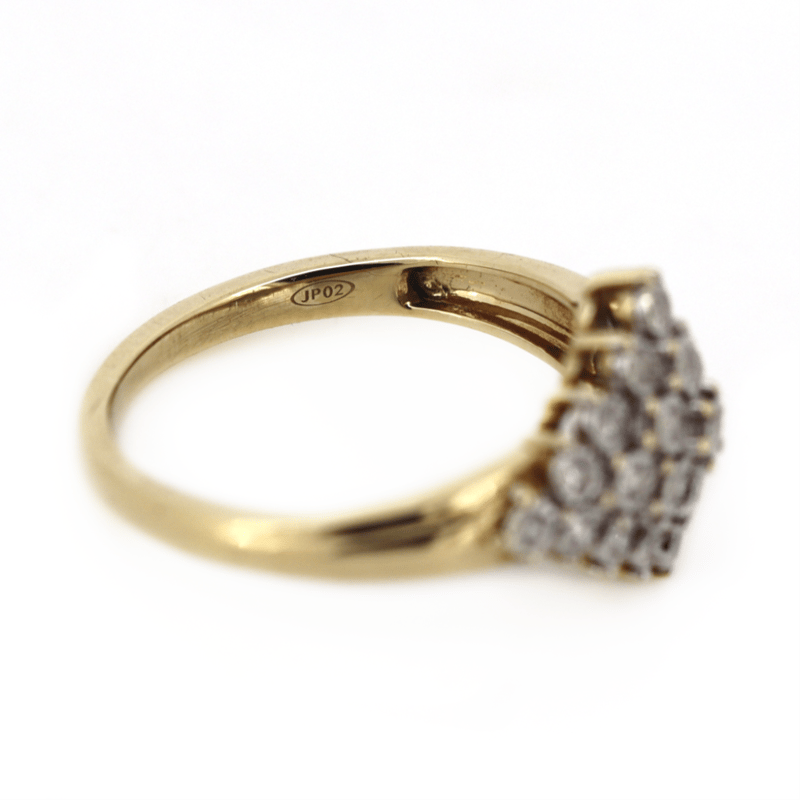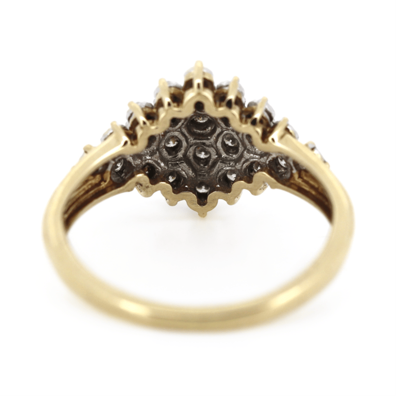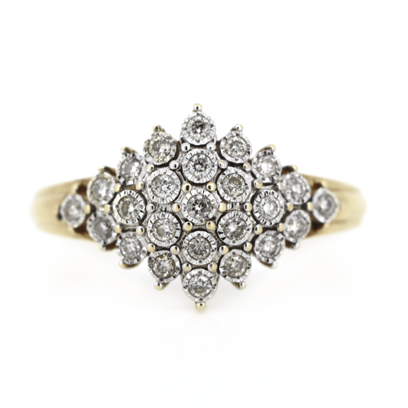 9K YELLOW GOLD, 0.25CT TDW DIAMOND, CLUSTER DRESS RING.
