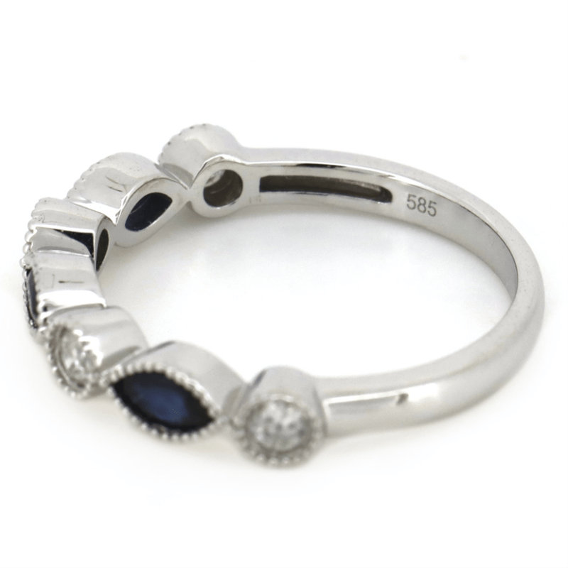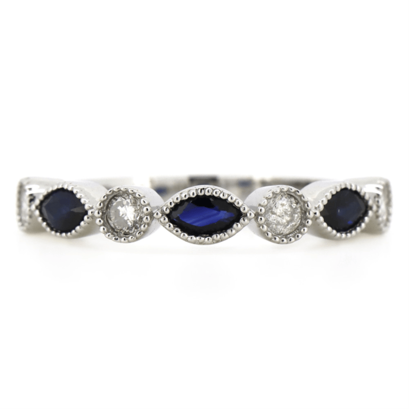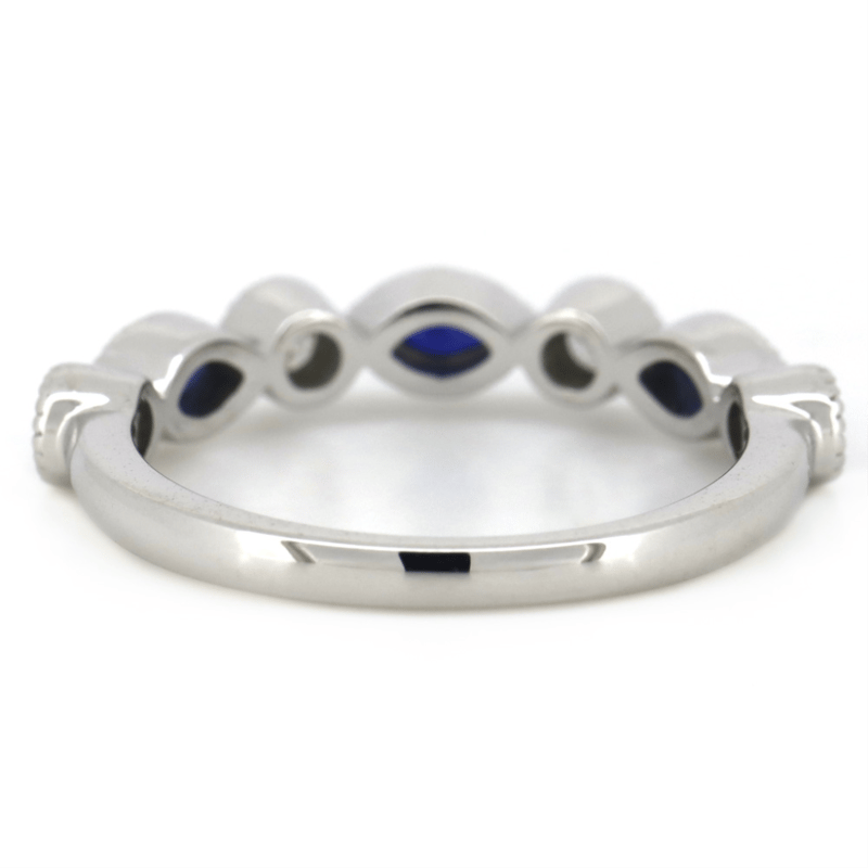 The Centre Features, 3 Marquise Cut, Dark Royal Blue, Sapphires (0.38Ct Tsw, Included), Bezel Set With Millegrain Detail. Alternating Between Are, 4 Round Brilliant Cut, Diamonds (0.23Ct Tdw, J-K Colour, Si2-I2 Clarity), Bezel Set With Millegrain Detail. Ring Size M 1/2.
