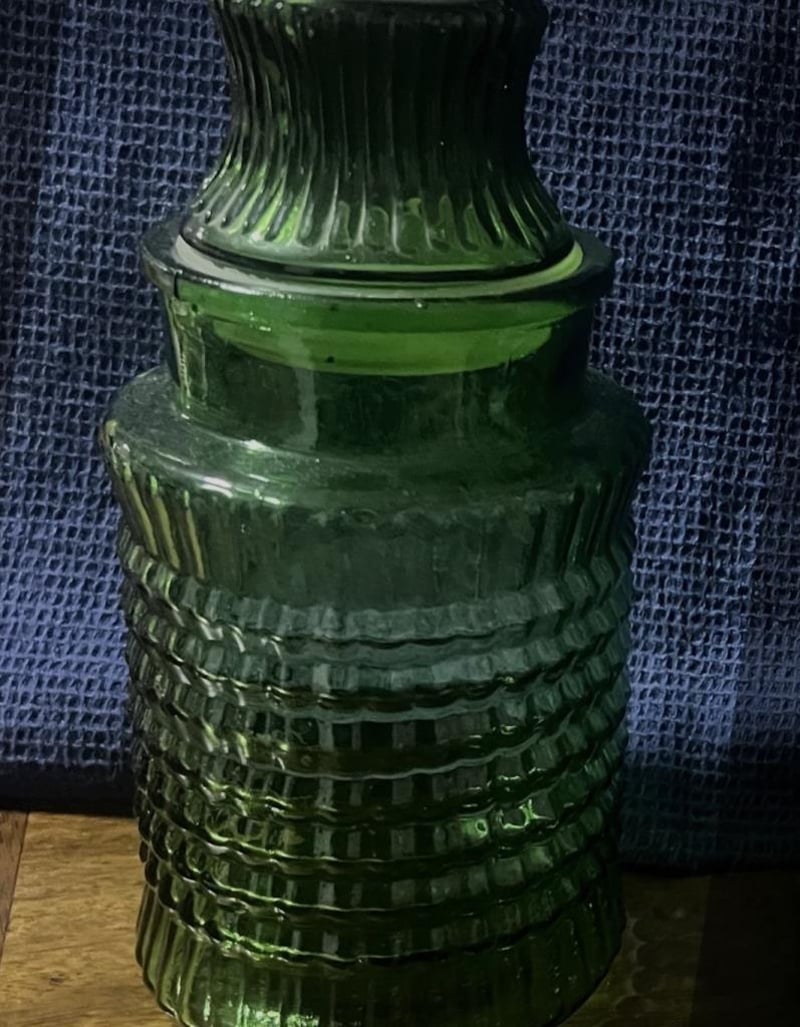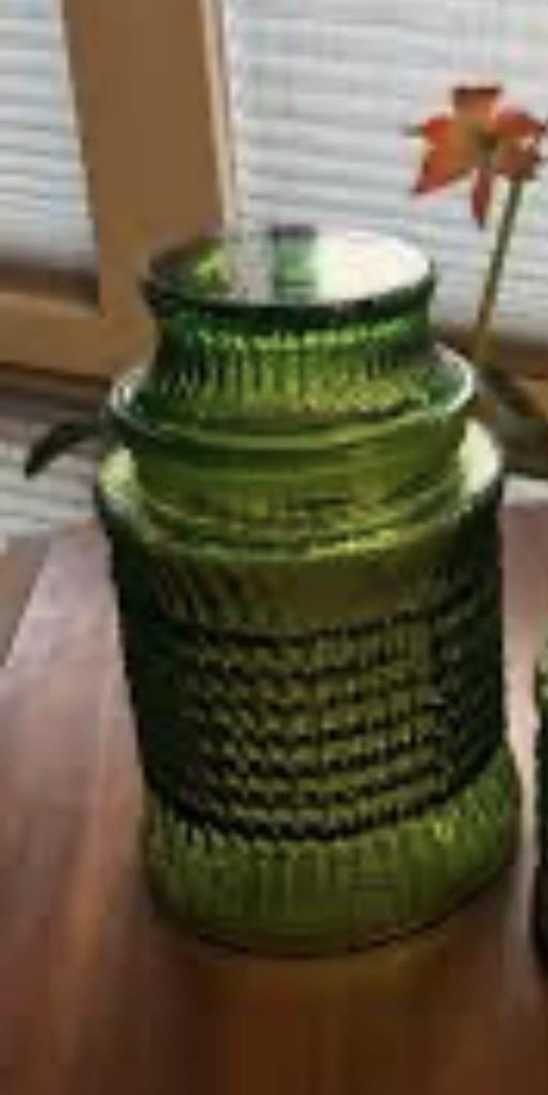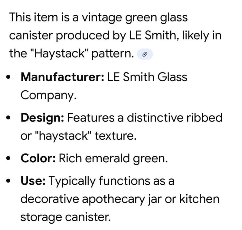 VINTAGE GREEN 'LE SMITH' GLASS CANISTERFeatures A Distinctive Ribbed Or 'Haystack' Texture, Rich Emerald Green, Typically Fucntions As A Decorative Apothecary JarCondition: Good - Refer To Images584460+13