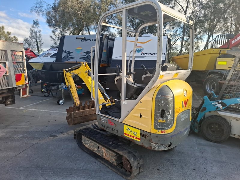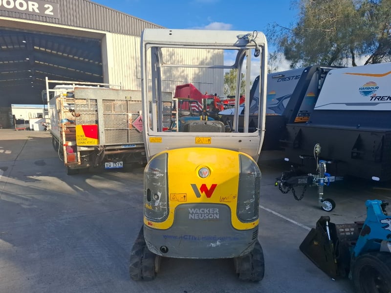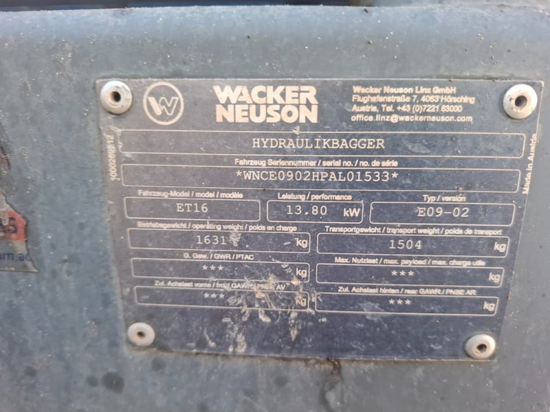 Description: Wacker-Neuson ET 16 excavator with 4 attachments, some wear and year to bidy and tracks.