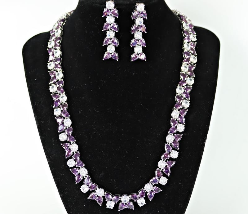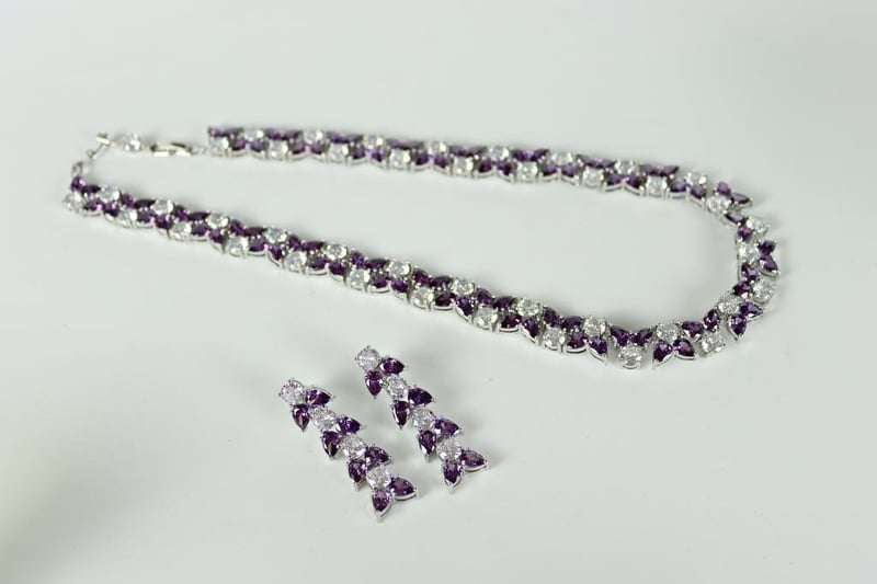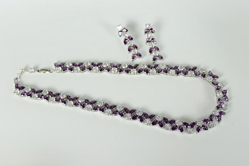 925 STERLING SILVER NECKLACE AND EARRINGS - PURPLE