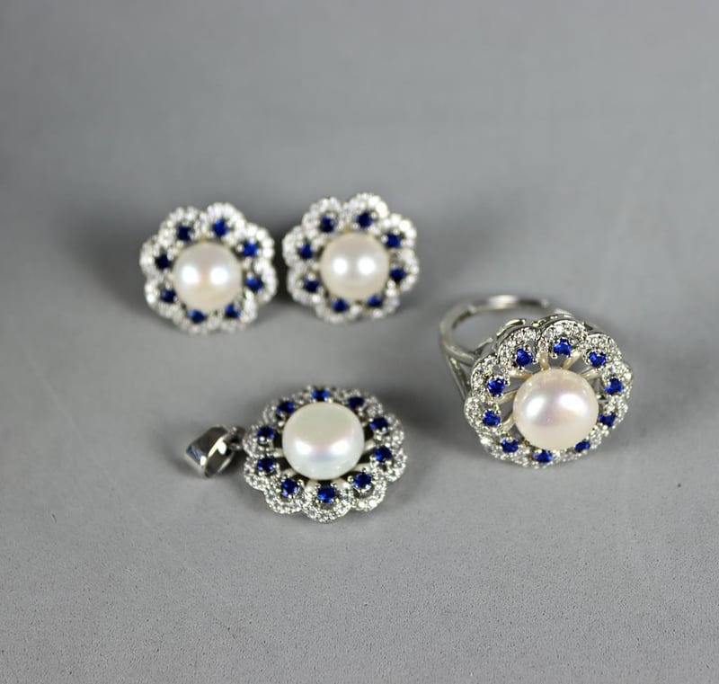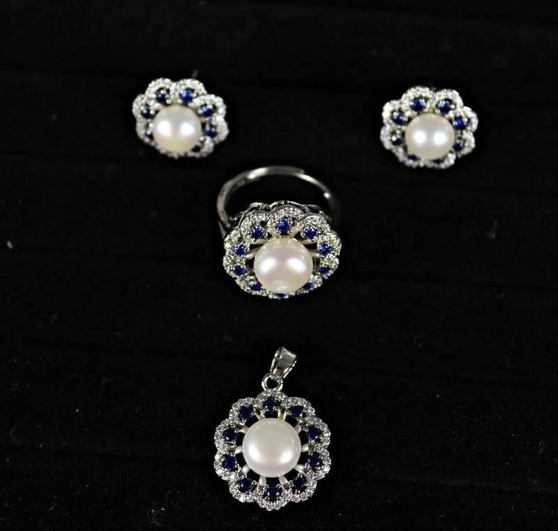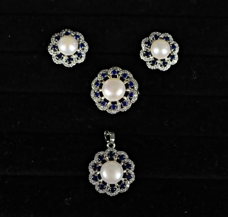 925 STERLING SILVER PEARL JEWELLERY SET - IVORY, BLUE