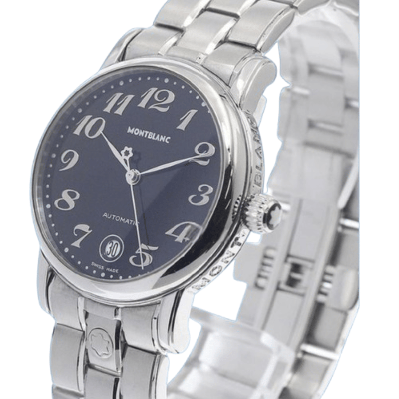 MONTBLANC STAR 7072 40MM STEEL BRACELET Brand: Montblanc Model Number: STAR Reference Number: 7072 Production Year: UNKOWN Dial: BLACK Case: STEEL Case Size: 40MM Bracelet: STEEL Movement: QUARTZ Box: Not Included Papers: Not Included Condition: Good - Refer to Images