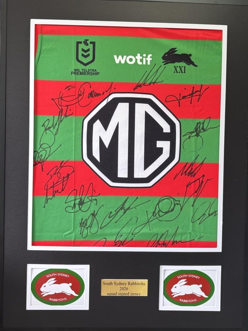 SOUTH SYDNEY RABBITOHS 2026 SQUAD SIGNED/FRAMED JERSEY