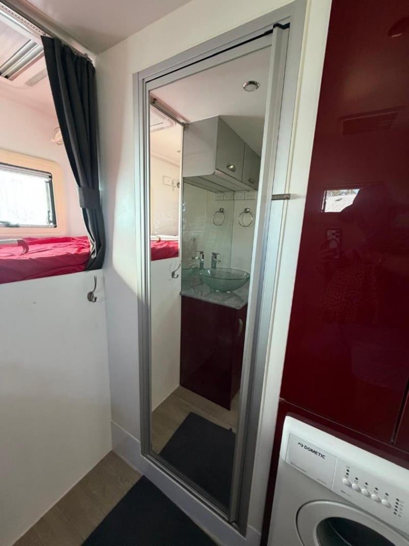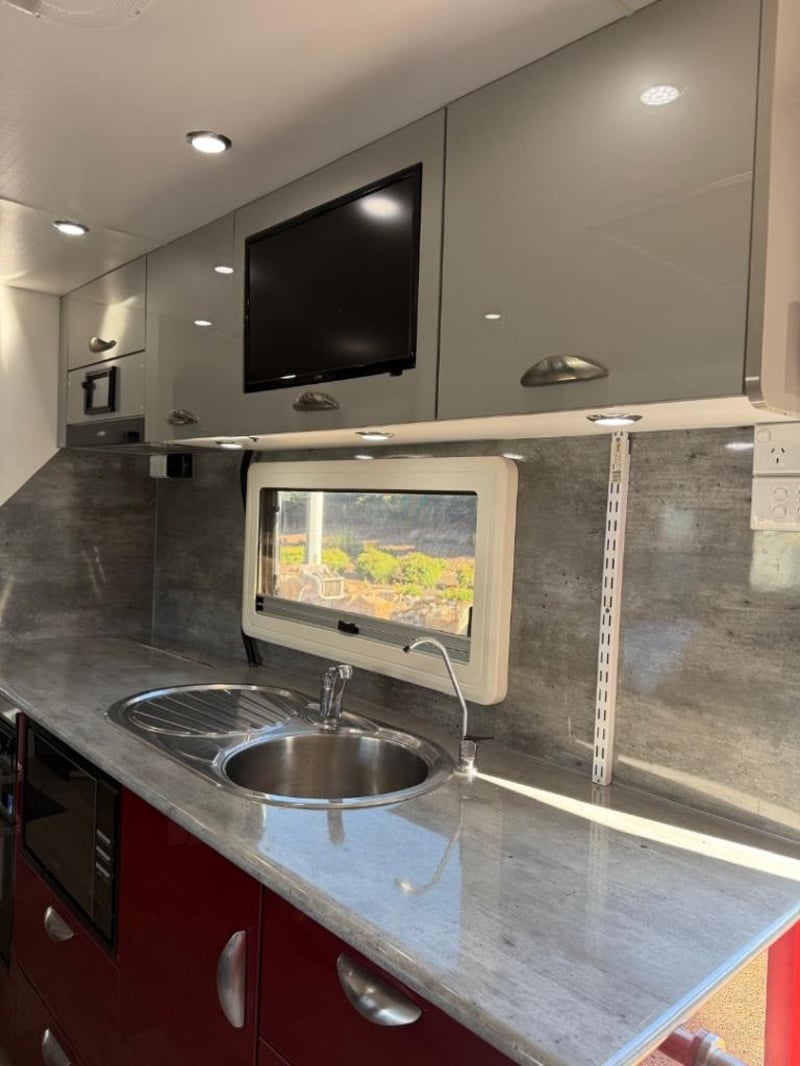 The semi off-road build means this van is designed to handle conditions beyond sealed roads while maintaining stable towing. The tandem axle configuration provides good weight distribution and towing stability.