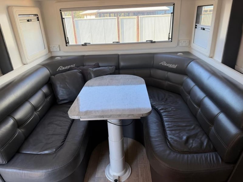 A custom-built 26ft Regent Monarch on a tandem axle semi off-road chassis. Regent is an Australian manufacturer with a solid reputation for quality construction and practical layouts, and this Monarch is a good example of their work. The van has been well cared for by previous owners and presents in tidy condition. At 26 feet it offers generous internal space, and the rear bunk sleeping arrangement with a large storage area underneath makes it a practical choice for families who need both sleeping capacity and room for gear.