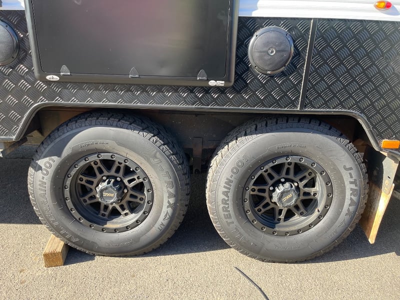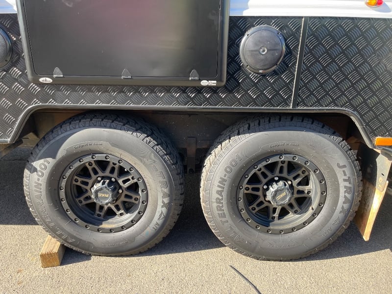 Constructed on a 150mm chassis with a 50mm body riser and extended drawbar, the van is designed to provide improved ground clearance and towing stability. The suspension system features roller rocker suspension rated to 3200kg with four shock absorbers, supported by 10-inch electric brakes and a DO-35 off-road hitch, making it suitable for touring on both sealed and regional roads.