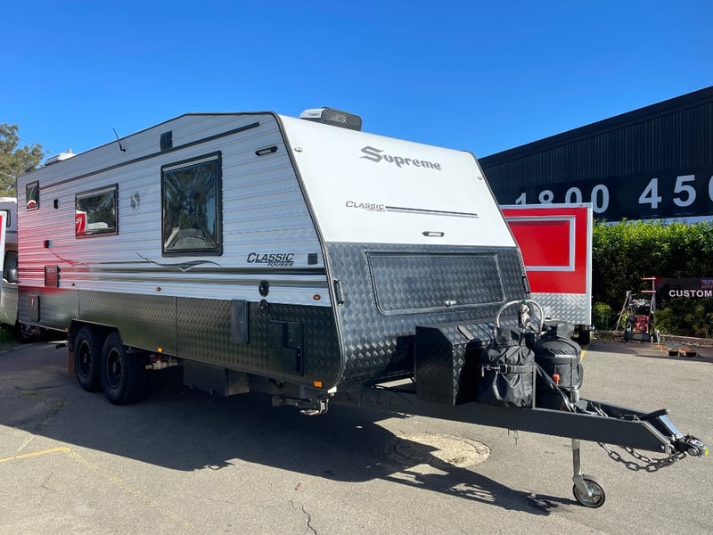 A modern and well-equipped touring caravan, this 2023 Supreme Classic Tourer 21’6” combines strong construction, off-grid capability and comfortable living features in a contemporary dual axle design. Built on a reinforced chassis with quality running gear and premium appliances, this caravan is ideally suited to extended touring, holiday travel or free camping across a wide range of conditions.
