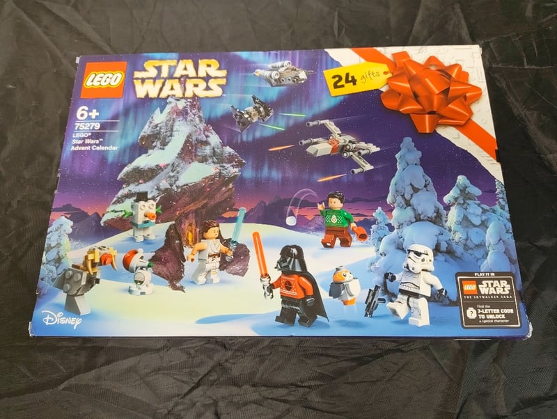 LEGO STAR WARS 75279 ADVENT CALENDAR 2022 - SEALED/NEW Item Size: Height: 30cm, Width: 40cm, Depth: 8cm, Weight: 2Kg Lego Star Wars Advent Calendar Set 75279 Featuring 24 Daily Gifts With Minifigures Including Darth Vader, Stormtroopers, And Exclusive Characters. Includes Winter-Themed Playsets With Snowy Landscape Elements, Spacecraft Models, And Buildable Structures. Set 6+ Age Rating. Sealed With Original Red Ribbon Bow Intact. Condition: Good - Refer To Images 655508+176