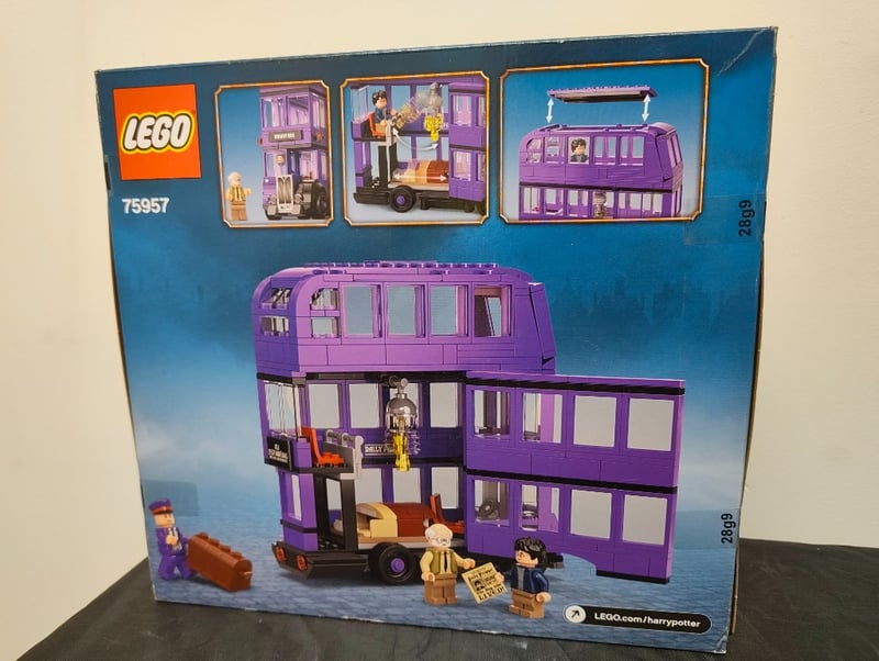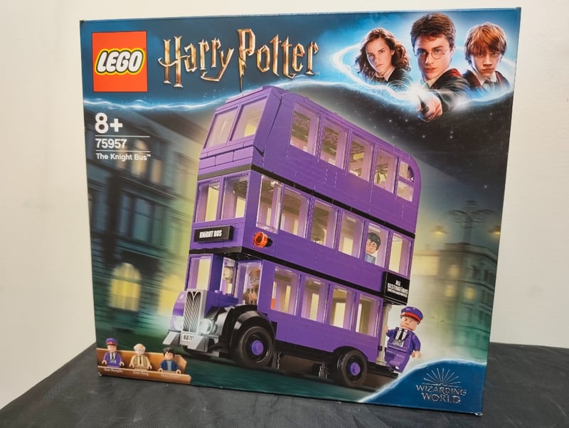 LEGO HARRY POTTER THE KNIGHT BUS SET 75957 Item Size: Height: 38cm, Width: 26cm, Depth: 28cm, Weight: 3Kg Lego Harry Potter The Knight Bus (Set 75957) Featuring The Iconic Purple Triple-Decker Magical Bus From The Franchise. Includes Minifigures Of Harry Potter, Hermione Granger, Ron Weasley, And Stan Shunpike. The Set Showcases Detailed Bus Architecture With Illuminated Windows, Articulating Sections, And Authentic Harry Potter Character Accessories. Original Packaging Intact With All Box Panels Present And Visible Product Photography Displaying Assembled Bus And Minifigure Details. Condition: Good - Refer To Images 655508+189