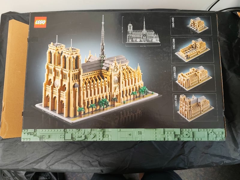 LEGO ARCHITECTURE NOTRE-DAME DE REIMS CATHEDRAL SETItem Size: Height: 55cm, Width: 60cm, Depth: 40cm, Weight: 7KgLego Architecture Set Depicting Notre-Dame Cathedral, Paris, France. Detailed Architectural Model Featuring Iconic Gothic Elements Including Twin Towers, Spire, Ornamental Detailing, And Decorative Vegetation. Includes Display Base. Set Number Visible On Packaging. Sealed In Original Retail Box With Architectural Reference Diagrams And Build Complexity Information Displayed On Reverse.Condition: Good - Refer To Images584531+111