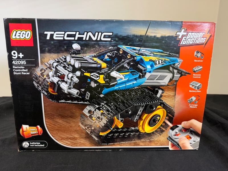 LEGO TECHNIC 42095 REMOTE-CONTROLLED STUNT RACER SETLego Technic Set 42095 Featuring A Remote-Controlled Stunt Racer With Dual-Motor Drive System, Transformable Design, And Power Functions Technology. Includes Blue And Yellow Tracked Vehicle With Articulated Chassis, Remote Control Unit, And Battery Box. Suitable For Ages 9+. Batteries Not Included.Condition: Good - Refer To Images584532+78