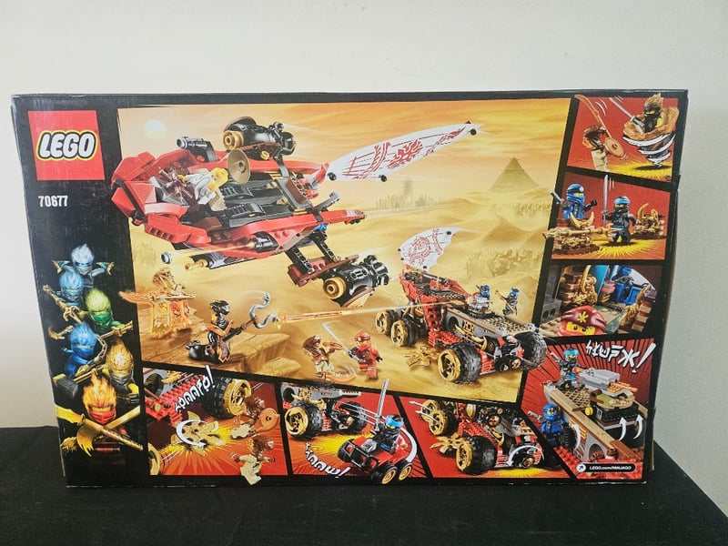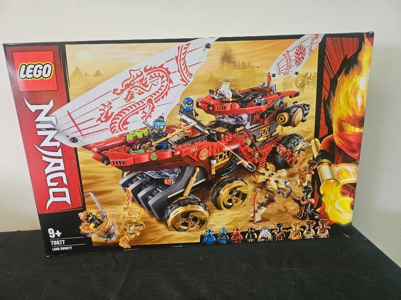 LEGO NINJAGO LAND BOUNTY SET 70677Lego Ninjago Land Bounty Set 70677 Featuring A Large Red And Black Motorized Vehicle With Golden Wheels, Multiple Minifigures Including Ninja Characters, And Desert-Themed Construction ElementsCondition: Good - Refer To Images584547+9