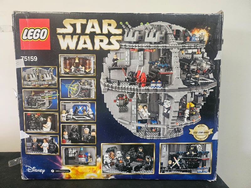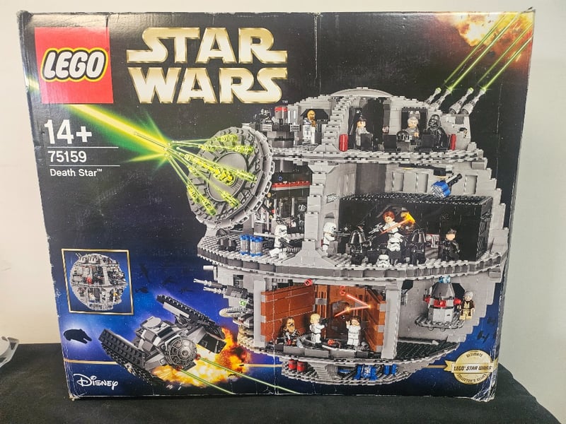 LEGO STAR WARS DEATH STAR SET 75159 - ULTIMATE COLLECTOR SERIESItem Size: Height: 55cm, Width: 53cm, Depth: 53cmLego Star Wars Death Star (Set 75159) - Ultimate Collector Series Featuring 4,016 Pieces With Multiple Interior Levels, Minifigures Including Darth Vader And Emperor Palpatine, Detailed Throne Room, Detention Block, Conference Chamber, And Hangar Bay With Tie Fighter. Age 14+.Condition: Fair - Refer To Images584547+4