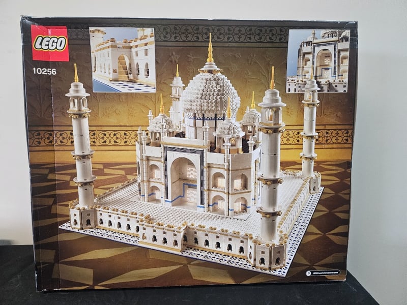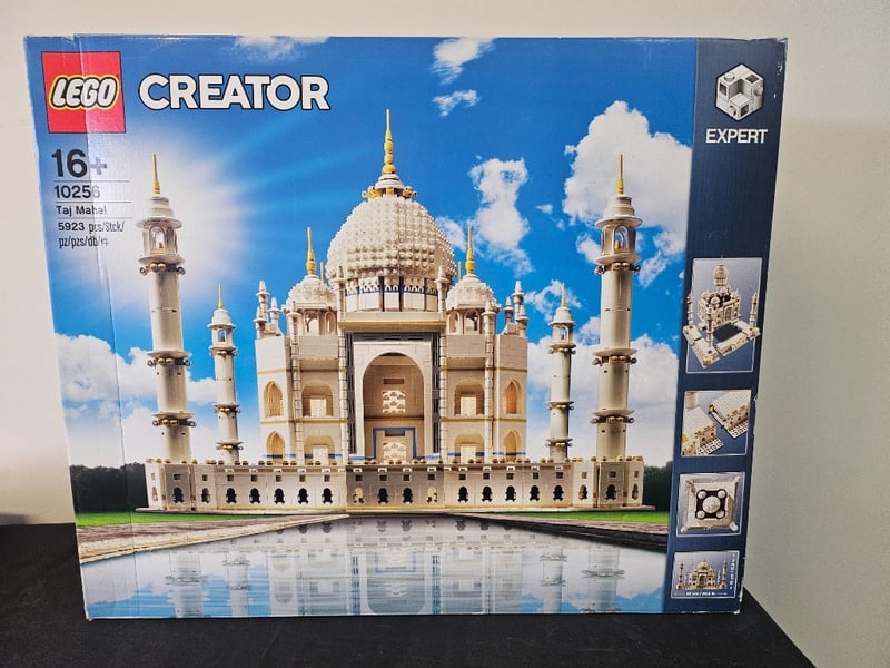Exceptional Lego Creator Expert Set Comprising Two Iconic Taj Mahal Models. Set 10256 Features An Intricate White And Gold Architectural Recreation With Detailed Minarets, Domed Central Structure, And Ornamental Base Platform. Set 10255 Presents The Classic Blue-Sky Backdrop Version With 5,923 Pieces, Showcasing The Monument'S Symmetrical Design With Four Corner Towers And Elaborate Decorative Elements. Both Sets Demonstrate Sophisticated Engineering With Precision-Molded Components, Authentic C