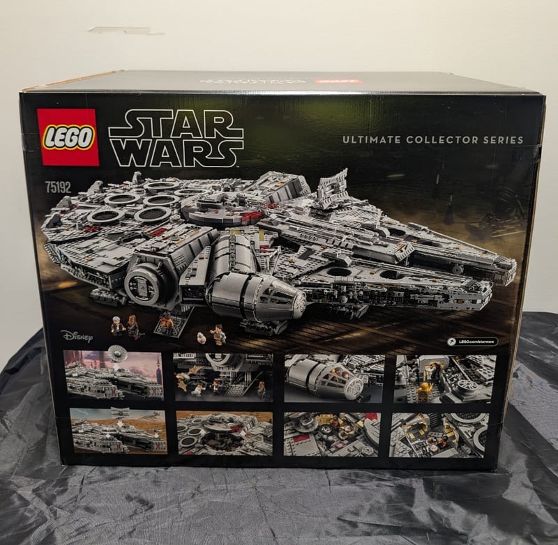 Lego Star Wars Ultimate Collector Series Millennium Falcon (Set 75192) Featuring Intricate Brick Construction With Detailed Cockpit, Cargo Hold, And Turret Placements. Includes Minifigures And Comprehensive Instruction Manual. Age Rating 16+. Original Sealed Packaging With Minimal Wear To Box Edges.