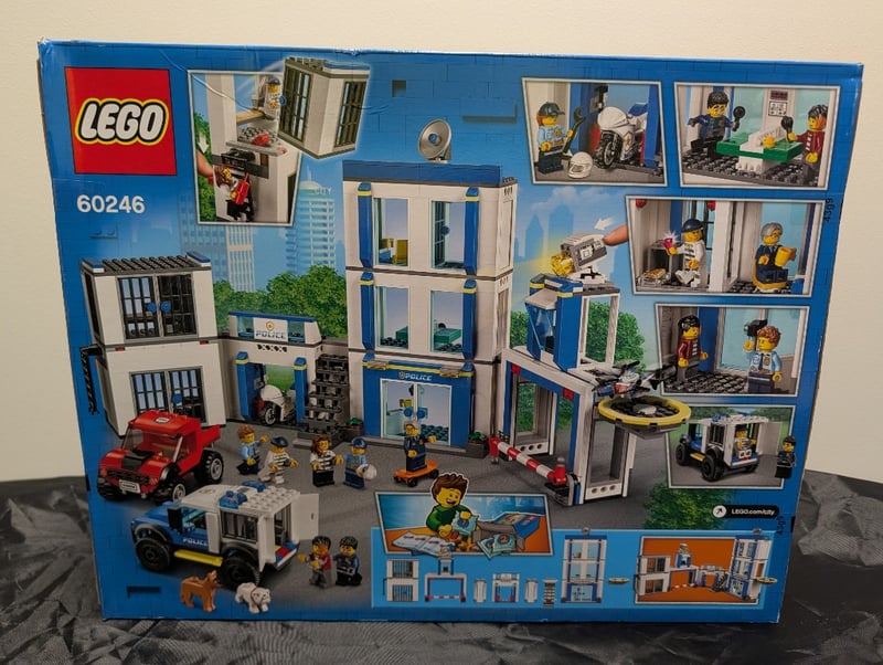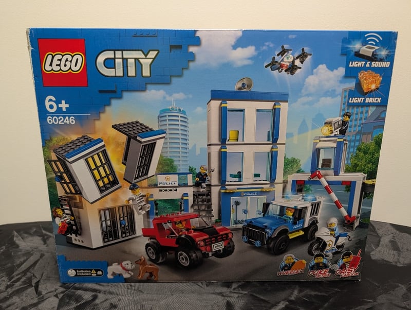 LEGO CITY POLICE STATION SET 60246 WITH LIGHT & SOUND FEATURESItem Size: Height: 38cm, Width: 48cm, Depth: 28cm, Weight: 4KgLego City Police Station Set 60246 Featuring A Three-Story Modular Police Headquarters With Light And Sound Brick, Police Vehicles Including A Patrol Car And Red Emergency Truck, Motorcycle, Drone, Multiple Minifigures, And Detailed Interior Spaces. Set Includes Working Light Brick Element And Interactive Sound Features. Age Rating 6+.Condition: Good - Refer To Images584547+107