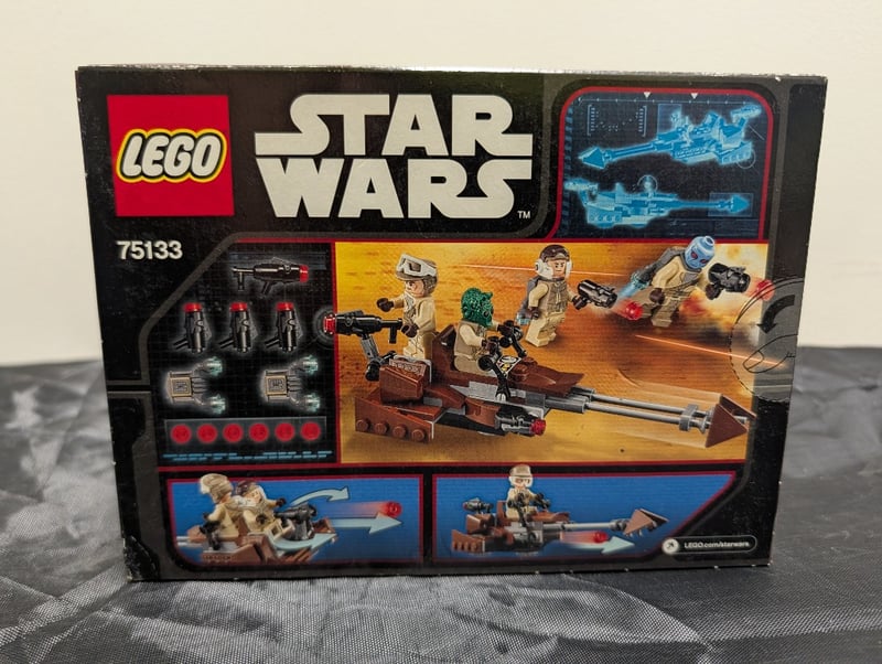 LEGO STAR WARS 75133 REBEL ALLIANCE BATTLE PACKItem Size: Height: 25cm, Width: 25cm, Depth: 25cm, Weight: 2KgLego Star Wars Set 75133 Rebel Alliance Battle Pack Featuring Four Minifigures With Weapons And Accessories, Including A Buildable Speeder With Dual Blasters. Original Packaging With Age-Appropriate 6-12 RatingCondition: Good - Refer To Images584547+149
