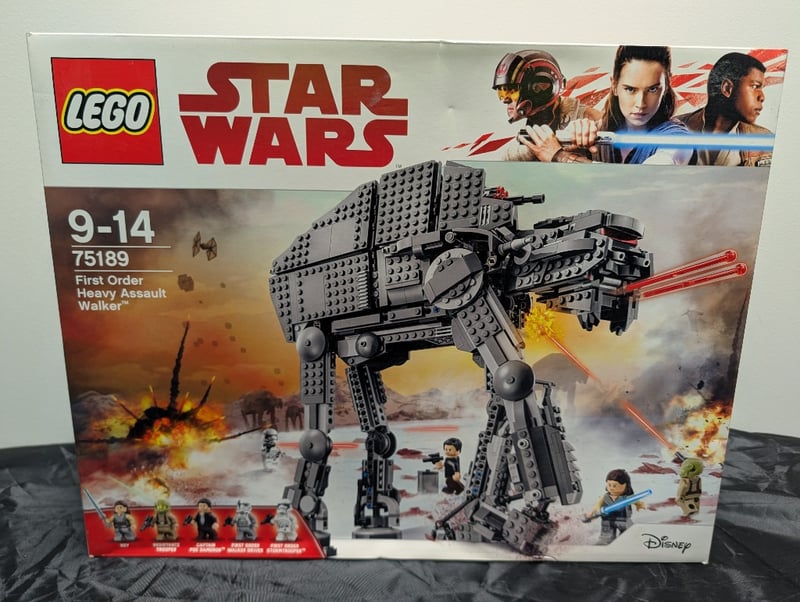 LEGO STAR WARS FIRST ORDER HEAVY ASSAULT WALKER SET 75189Item Size: Height: 40cm, Width: 40cm, Depth: 40cm, Weight: 4KgLego Star Wars Set 75189 Featuring The First Order Heavy Assault Walker From The Sequel Trilogy. This Buildable Walker Includes Detailed Construction With Poseable Legs, Rotating Turrets, And Firing Projectiles. The Set Comprises Multiple Minifigures Including First Order Stormtroopers And Resistance Fighters. Original Retail Packaging With Age-Appropriate Rating 9-14 Years. Complete With Instruction Manual And All Visible Components Intact. Authentic Disney-Licensed Lego Star Wars Collectible FCondition: Good - Refer To Images584547+130