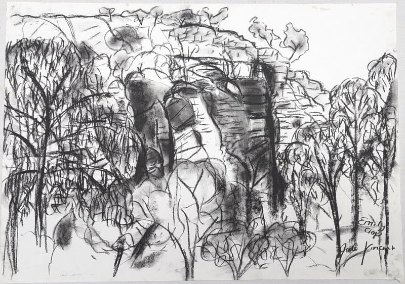 JULIE VINCENT Original Charcoal Drawings On Paper Title: Telegraph StationĀ (Top), Emily Gap (Bottom) Image Size: 42cm x 59cm Signature Details: Signed Lower Right Condition: Good - Refer To Images 587963+8