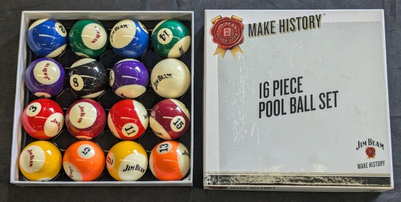SIXTEEN PIECE JIM BEAM POOL BALL SET Condition: Good - Refer To Images 584534+10