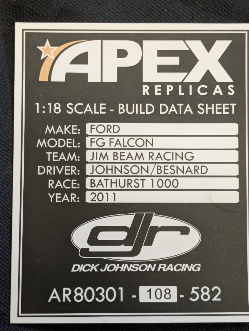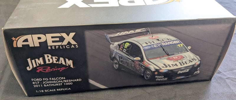 APEX REPLICAS FORD FG FALCON #17 JIM BEAM RACING 2011 BATHURST 1000, 1:18 SCALE Highly Detailed, #17 Johnson/Besnard Condition: Good - Refer To Images 584534+23