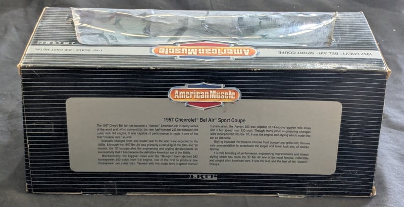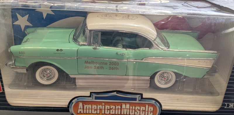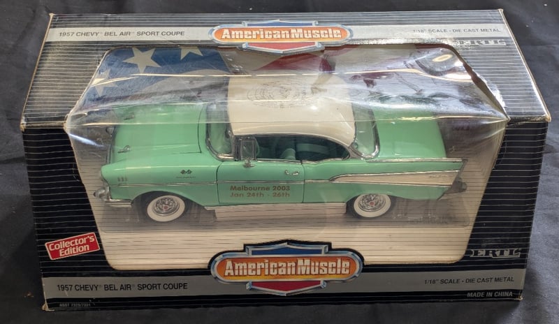 1957 CHEVROLET BEL AIR SPORT COUPE DIE-CAST MODEL - AMERICAN MUSCLE COLLECTOR'S EDITION Melbourne 2003, 1:18 Scale Condition: Good - Refer To Images 584534+24