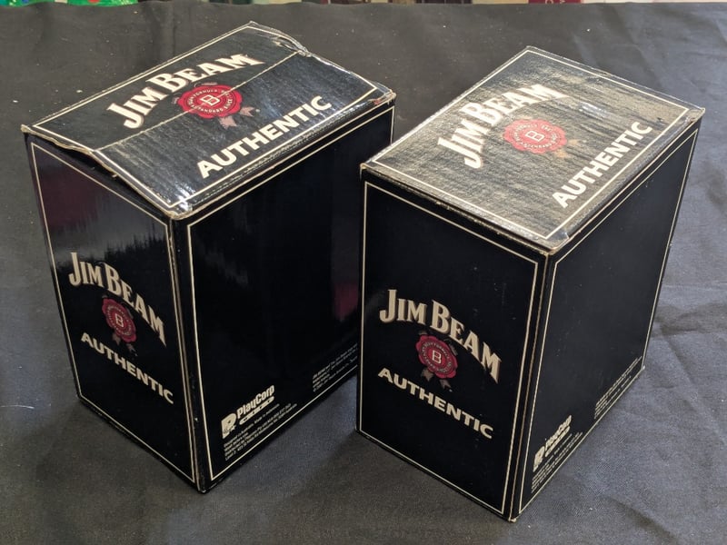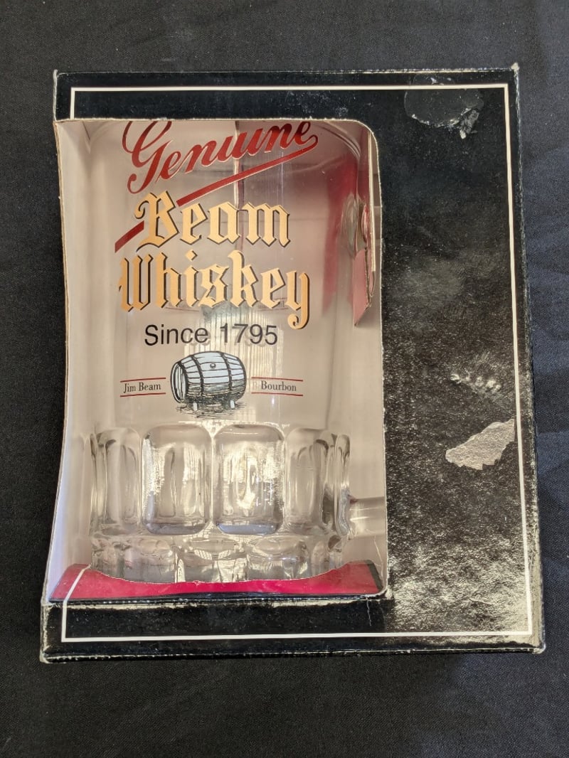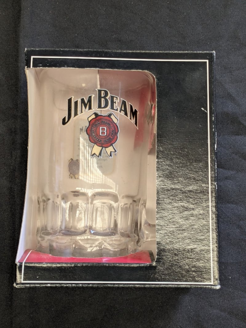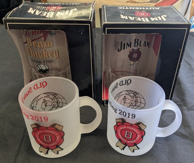 JIM BEAM AND BEAM WHISKEY COLLECTIBLE GLASSWARE SET WITH ORIGINAL PACKAGING Two Jim Beam Whiskey Tankards, Two 2019 Qld State Jim Beam Frosted Glass Mugs Condition: Good - Refer To Images 584534+25