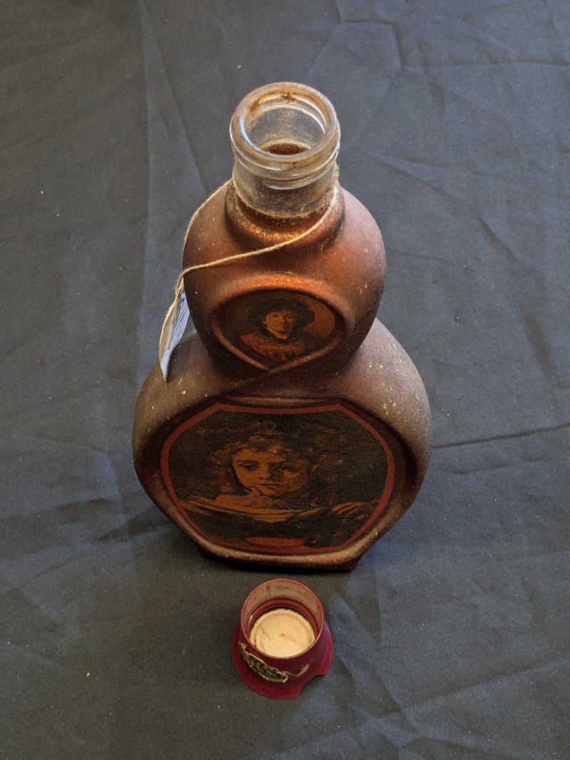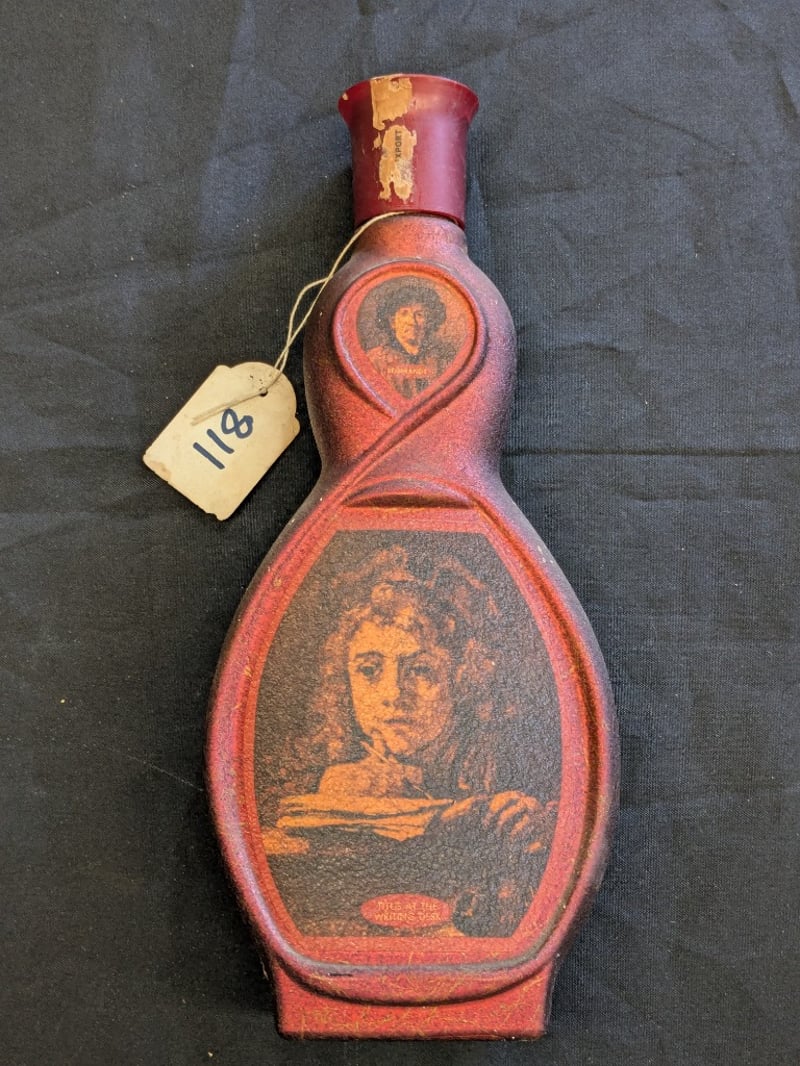 DECANTER WITH REMBRANDT ARTWORK Item Size: Height: 30cm, Width: 14cm, Depth: 7cm Crimson Exterior With Rembrandt Artwork Imagery Condition: Fair - Refer To Images 584534+30