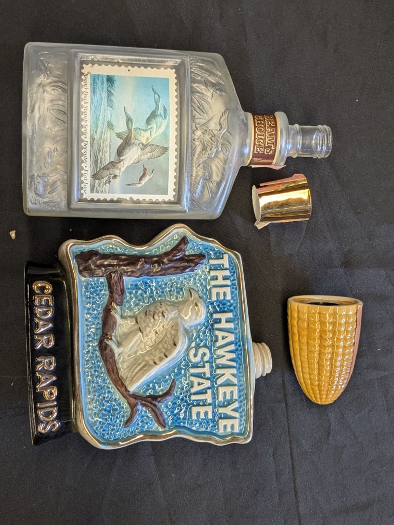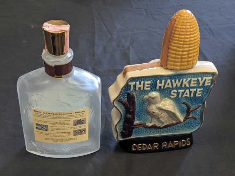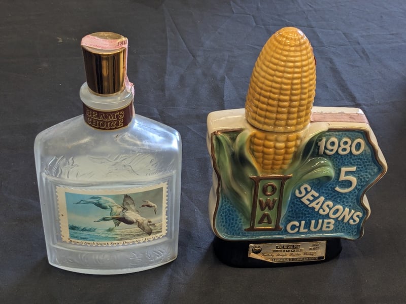 BEAM'S DUCK STAMP SERIES DECANTER AND CEDAR RAPIDS 1980 5 SEASONS CLUB