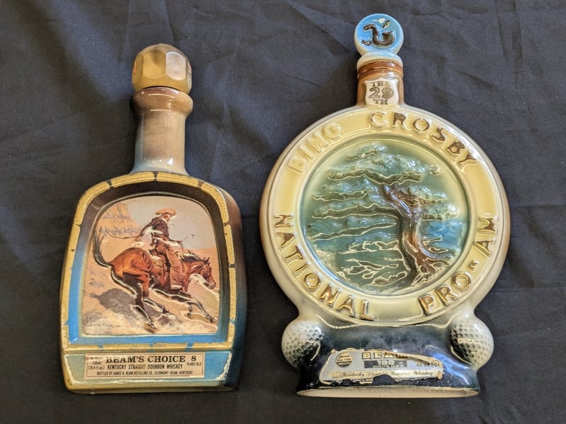 BEAM'S CHOICE BOURBON WHISKEY DECANTERS & BING CROSBY GOLF TROPHY DECANTER Heights Range From: 27Cm - 30Cm Condition: Fair - Refer To Images 584534+38