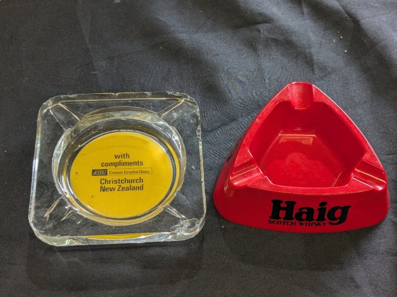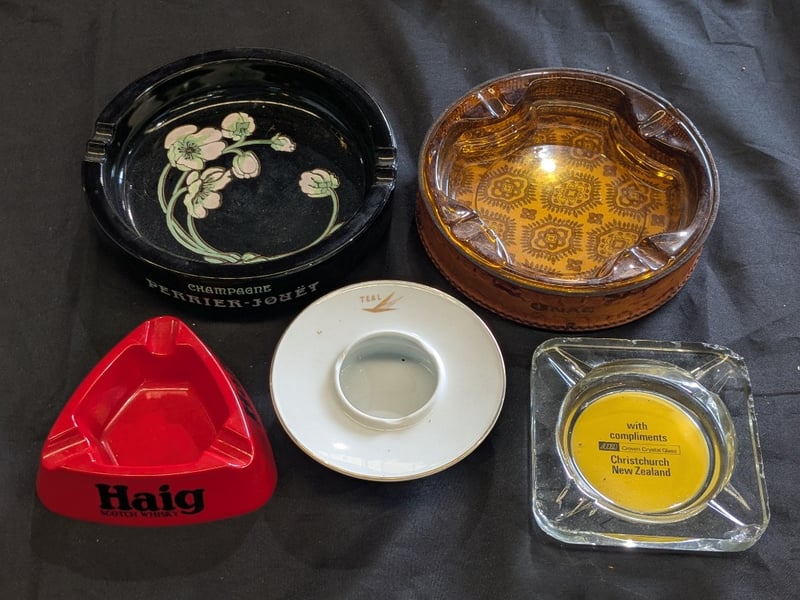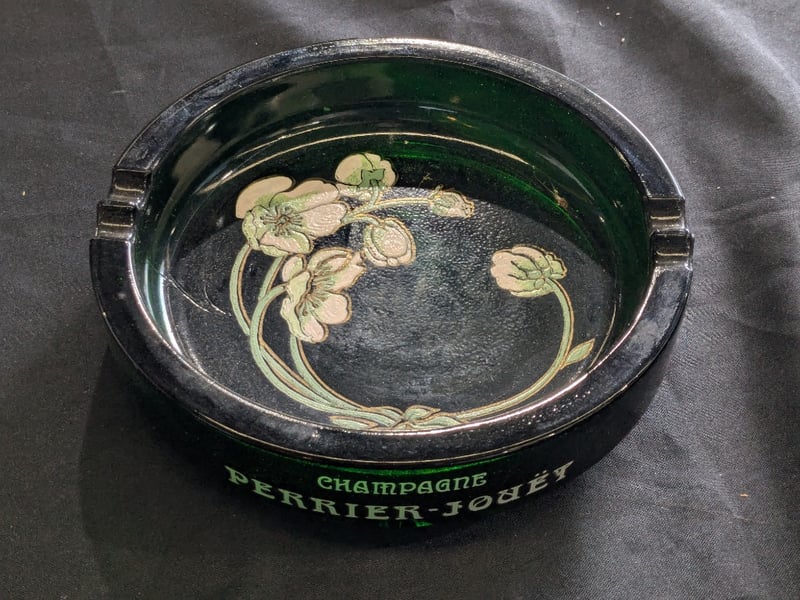 Includes Green Glass Cha.Pagne Perrier-Jouet, Leather Style Wrapped Ashtray, Noritake 'Teal' Ashtray, Etc