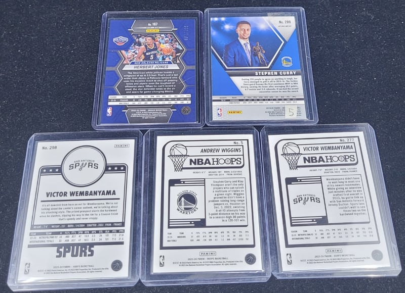 COLLECTION OF NBA BASKETBALL TRADING CARDS Includes:Panini Hoops & PrizmStephen Curry, Herbert Jones, Victor Wembanyama, Andrew Wiggins Condition: Good - Refer To Images 587970+15