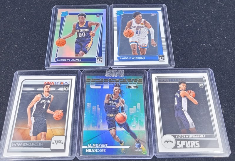 COLLECTION OF NBA BASKETBALL TRADING CARDS Includes:Panini Hoops & DonrussHerbert Jones, Aaron Wiggins, Victor Wembanyama, Ja Morant Condition: Good - Refer To Images 587970+16