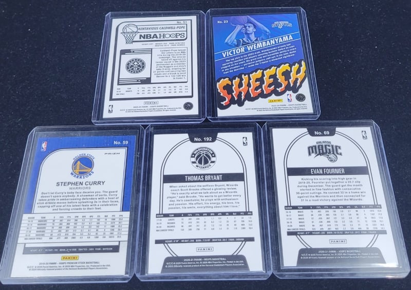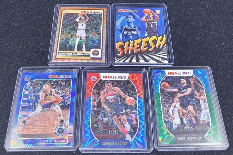 COLLECTION OF NBA BASKETBALL TRADING CARDS Includes:Panini HoopsStephen Curry, Thomas Bryant, Evan Fournier, Victor Wembanyama, Kentavious Caldwell-Pope Condition: Good - Refer To Images 587970+18
