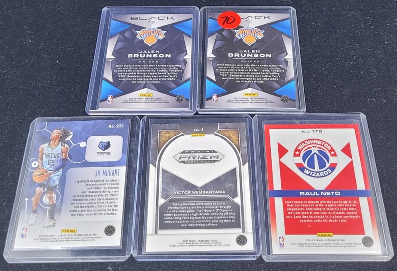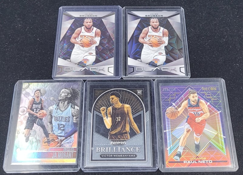 COLLECTION OF NBA BASKETBALL TRADING CARDS Includes: Panini Prizm, Chronicles, Black & ReconJa Morant, Victor Wembanyama, Raul Neto, Jalen Brunson Condition: Good - Refer To Images 587970+20