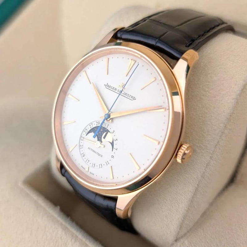 JAEGER-LECOULTRE Q1362510 MASTER ULTRA THIN MOONPHASE 39MM 2021 BOX & PAPERS Brand: Jaeger-Lecoultre Model Number: Master Ultra Thin MoonPhase Reference Number: Q1362510 / 109.2.A5.S Production Year: 2021 Case Size: 39mm Movement: Automatic Box: YesPapers: Yes