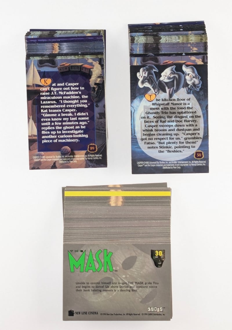 COLLECTION OF VINTAGE MOVIE TRADING CARDS BASED ON THE 1990S FILMS CASPER AND THE MASK.Item Size: Height: 5cm, Width: 5cm, Depth: 5cm, Weight: 0.5KgThese Cards Are Considered Collectible Memorabilia From Popular 90S Cinema, Casper Cards 1995 Movie And The Mask Cards 1994 Film The Mask.Condition: Good - Refer To ImagesFC163119+21