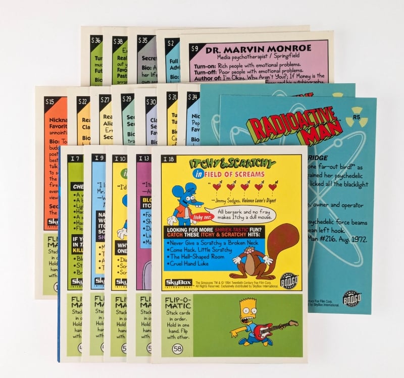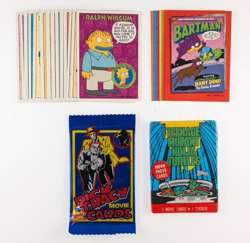 COLLECTION OF VINTAGE TRADING CARDS, PRIMARILY FEATURING THE SIMPSONS AND TEENAGE MUTANT NINJA TURTLES.Item Size: Height: 5cm, Width: 5cm, Depth: 5cm, Weight: 0.5KgThe Cards Include 1990S Skybox The Simpsons Trading Cards, Packs Of Dick Tracy Movie Cards And Teenage Mutant Ninja Turtles Movie Photo Cards From Topps.Condition: Good - Refer To ImagesFC163119+24