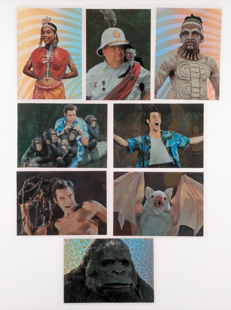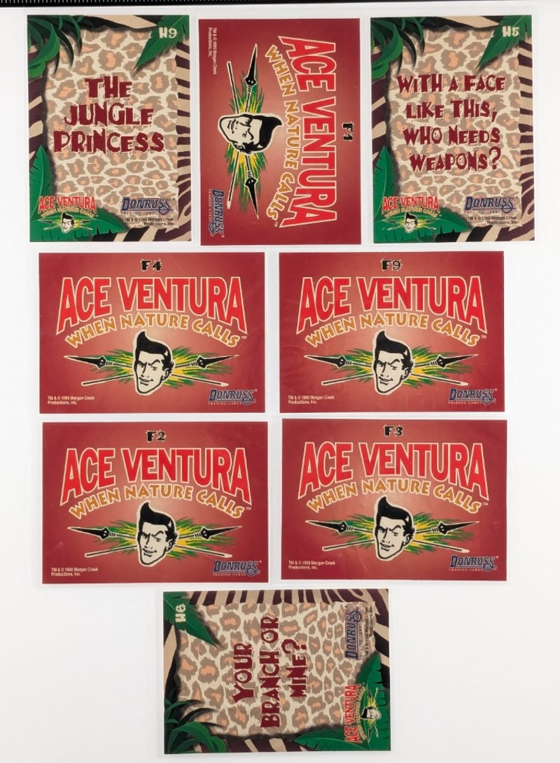 COLLECTION OF 1995 DONRUSS ACE VENTURA: WHEN NATURE CALLS EMBOSSED FOIL TRADING CARDS.Item Size: Height: 5cm, Width: 5cm, Depth: 5cm, Weight: 0.5KgThe Set Features High-Gloss, Embossed Foil Finish Scenes From The Movie, The Images Depict Various Characters And Moments, Including Ace Ventura And The Iconic White Bat.Condition: Good - Refer To ImagesFC163119+25
