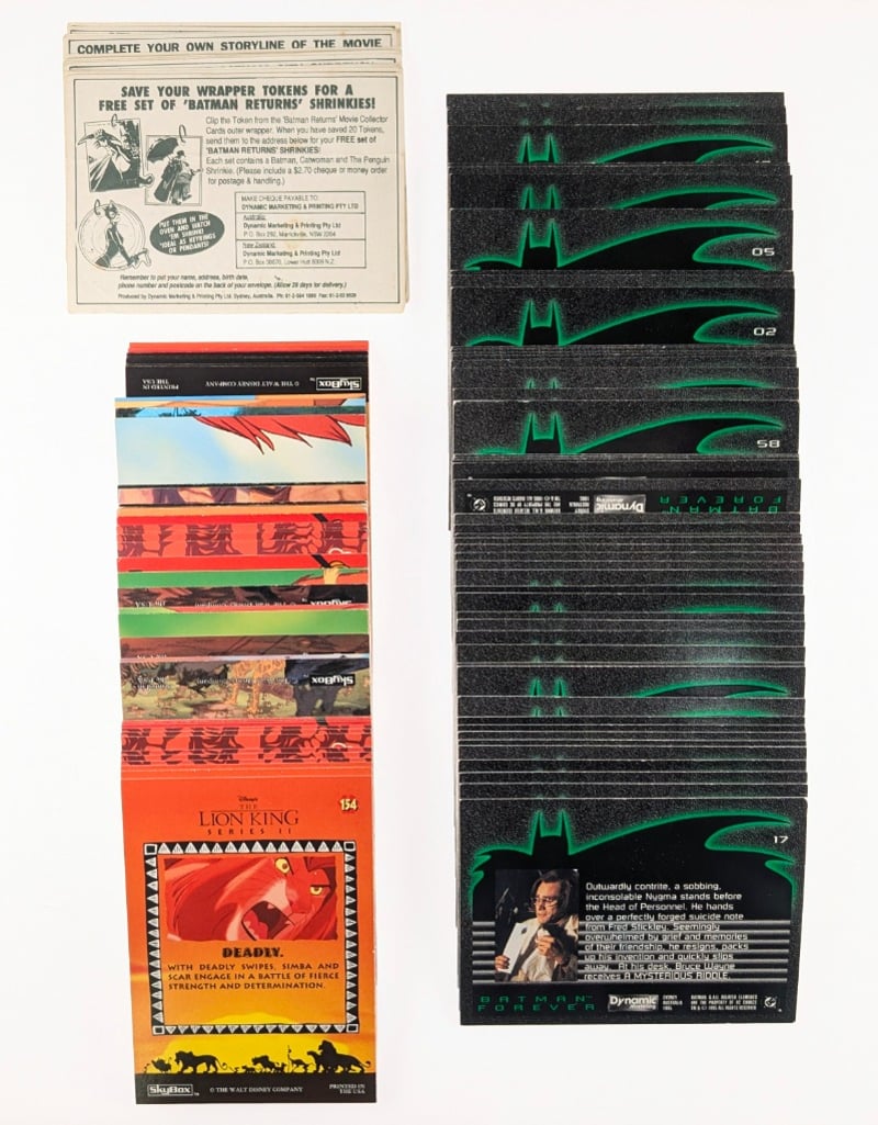 VINTAGE BATMAN & LION KING COLLECTIBLE VHS TAPE COLLECTION WITH PROMOTIONAL MATERIALSItem Size: Height: 18cm, Width: 13cm, Depth: 5cm, Weight: 5KgComprehensive Collection Featuring Batman Returns Promotional Items Including Gotham City Dollar Bills And Wrapper Tokens, Alongside A Substantial Lion King Vhs Tape Series Collection. Includes Original Packaging, Instruction Cards For Redemption Promotions, And Batman Returns Merchandise Advertising Materials From The 1990S Era.Condition: Fair - Refer To ImagesFC163119+44