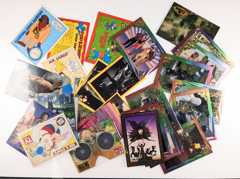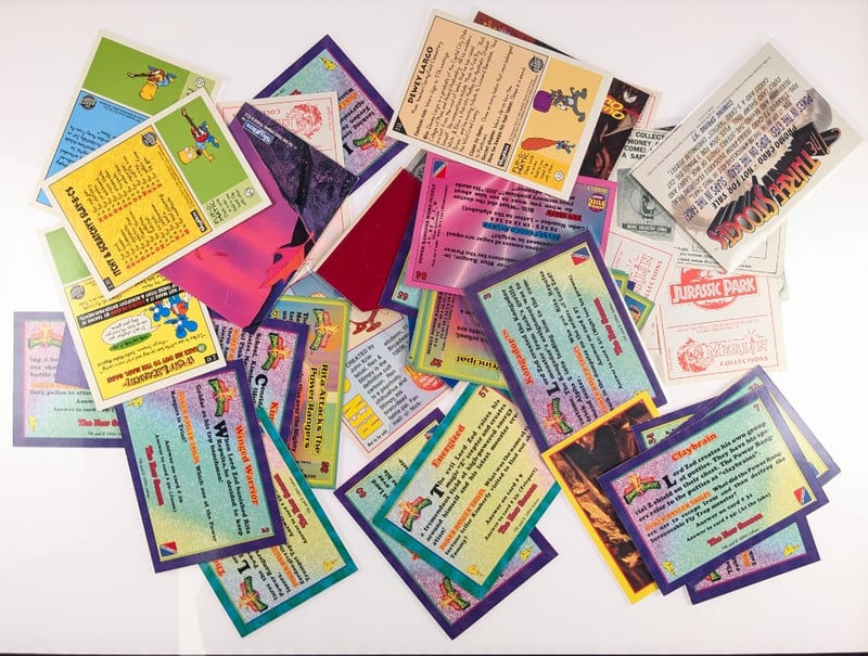 COMPREHENSIVE VINTAGE TRADING CARD AND ENTERTAINMENT MEMORABILIA ASSORTMENTItem Size: Height: 5cm, Width: 5cm, Depth: 5cm, Weight: 0.5KgExtensive Collection Of Vintage Trading Cards And Entertainment Memorabilia Spanning Multiple Decades, Including Colorful Cartoon Character Cards, Film And Television Promotional Cards, Instructional Cards With Vibrant Borders In Yellow, Green, Purple And Pink, Photographic Cards Featuring Cast Members, Specialty Cards With Metallic And Holographic Finishes, And Miscellaneous Collectible Cards From Various Entertainment Franchises. Collection Displays Diverse Printing Techniques And Color PalettCondition: Fair - Refer To ImagesFC163119+57